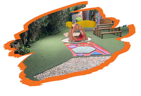 Camino Sensorial, un espacio donde nuestros estudiantes pueden explorar variedad de texturas y formas que ayudan a su desarrollo físico y mental, exclusivamente diseñado y pensado en nuestros niños para motivar su aprendizaje a través de sus sentidos por medio de lo que ven, tocan y sienten.
